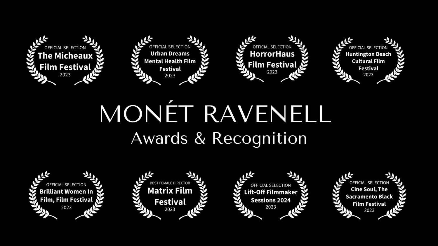 Her short film The Outside, developed through the Women of Color Filmmakers Fellowship, won Best Film and went on to screen at Brilliant Women in Film, Urban Dreams Mental Health Film Festival, and Horror Haus. She later earned Best Female Director at the Matrix Film Festival and continued building a body of work centered on psychological truth and transformation.